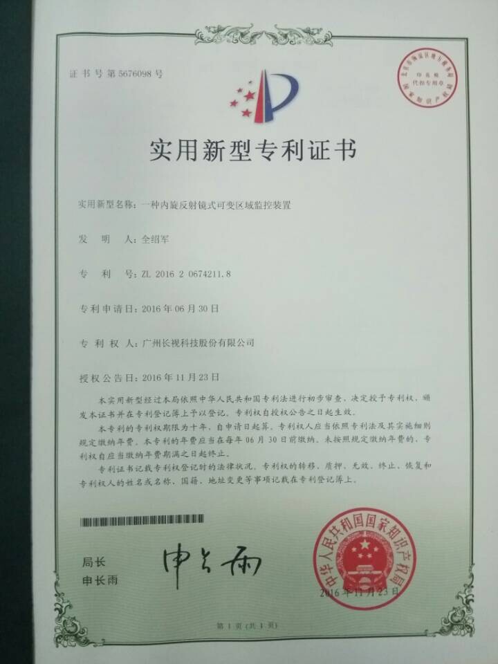 2016年12月20日,長視科技榮獲兩個實用新型專利證書和一個外觀設(shè)計專利證書。