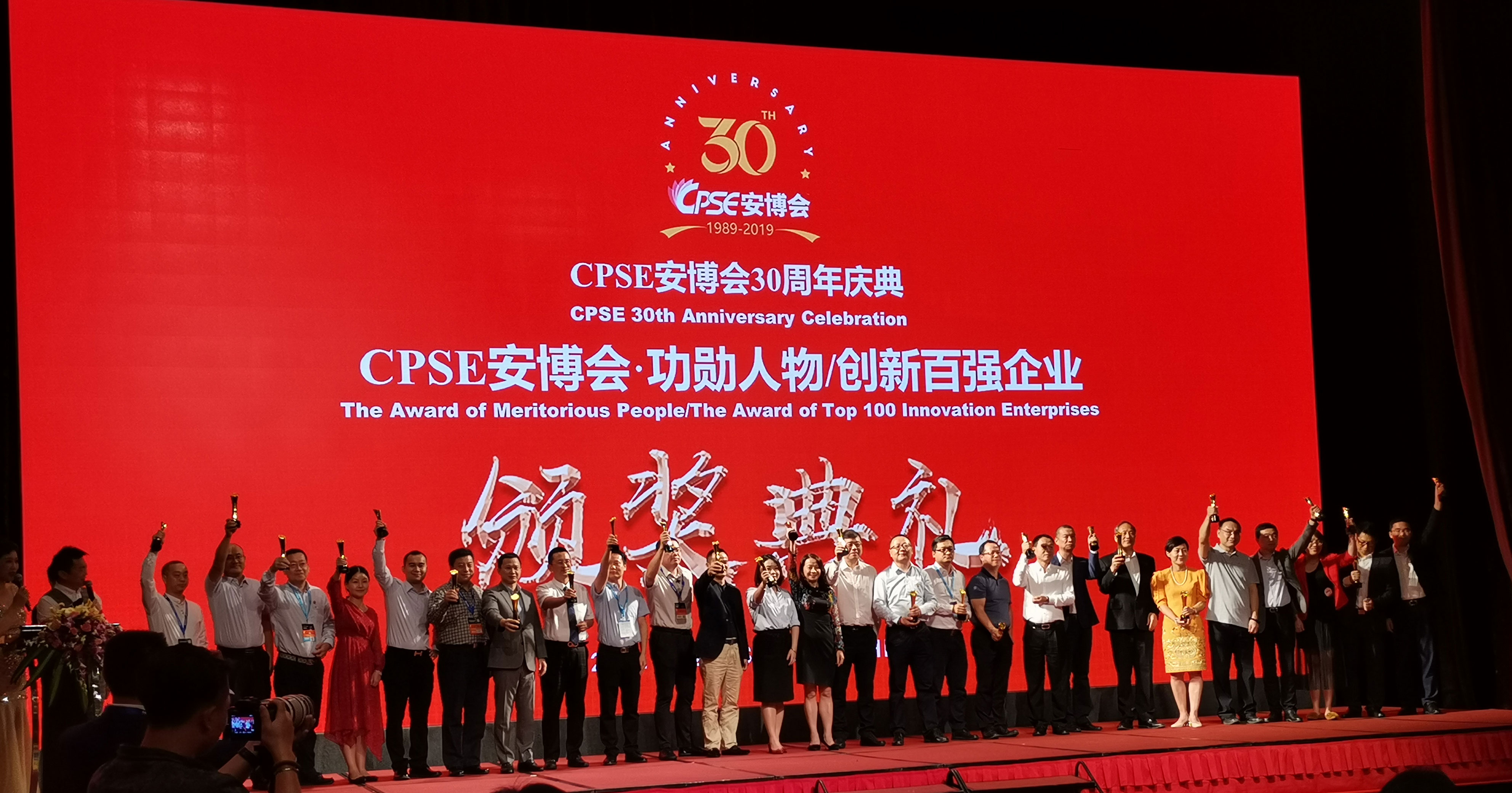 2019年10月28日,在安博會(huì)30周年慶典上,長視科技股份有限公司榮獲安博會(huì)30周年創(chuàng)新百強(qiáng)企業(yè)獎(jiǎng),董事長全紹軍先生榮獲安博會(huì)30周年功勛人物獎(jiǎng)。